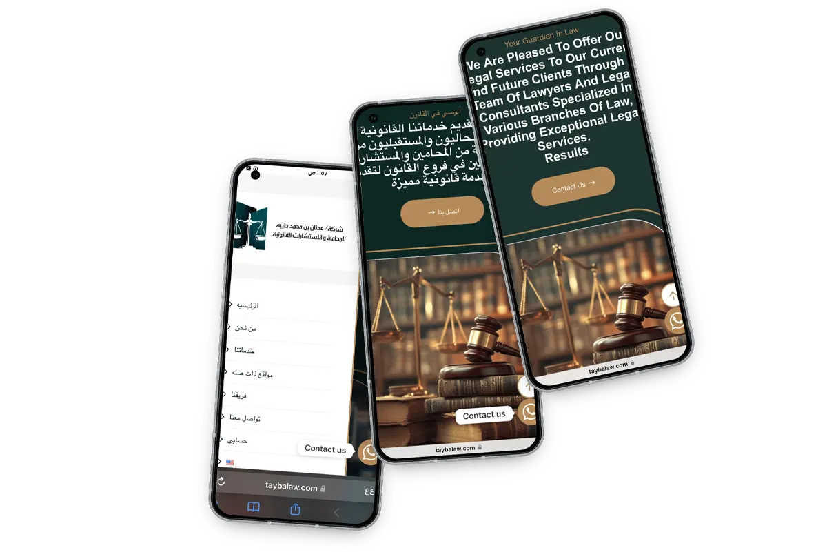 taybalaw.com is a Saudi law-firm website offering legal services such as arbitration, contract drafting and review, litigation, company formation, and specialized legal consultations. The site targets clients in Saudi Arabia, is available in both Arabic and English, and presents service overviews and contact options for consultations.